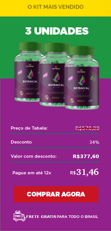 Botanical Slim nas Últimas unidades restantes com kits de até 75% desconto! Faça o pedido da sua unidade hoje com menor preço e garanta a promoção.